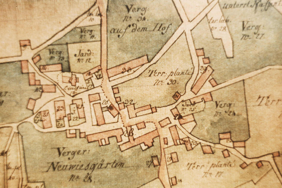 Plan von Ommersheim (um 1803), aus dem Bestand des Landesarchivs Speyer. |