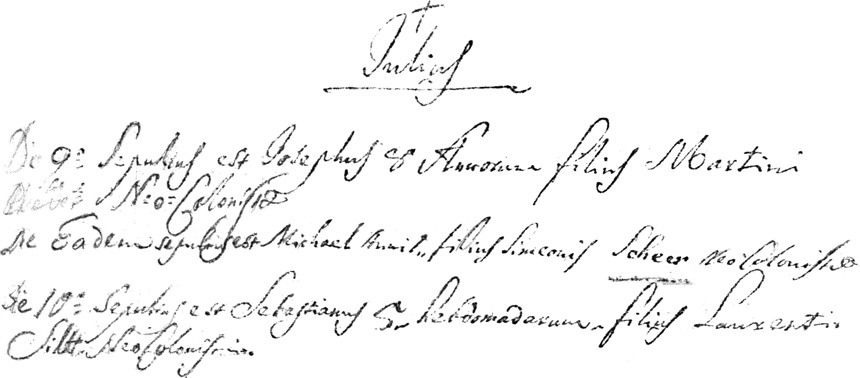 [Johann] Simon Scherer, Martins Sohn, verlebte den größeren Teil seines Lebens im Bliesgau und wandert 1785 39-jährig mit seiner 6-köpfigen Familie nach Ungarn aus. Er erhält am 1. Juni 1786 in Weprowatz die landwirtschaftliche Siedlerstelle 64 in der Mittelgasse und stirbt am 2. Märt 1823 mit 76 ½ Jahren.