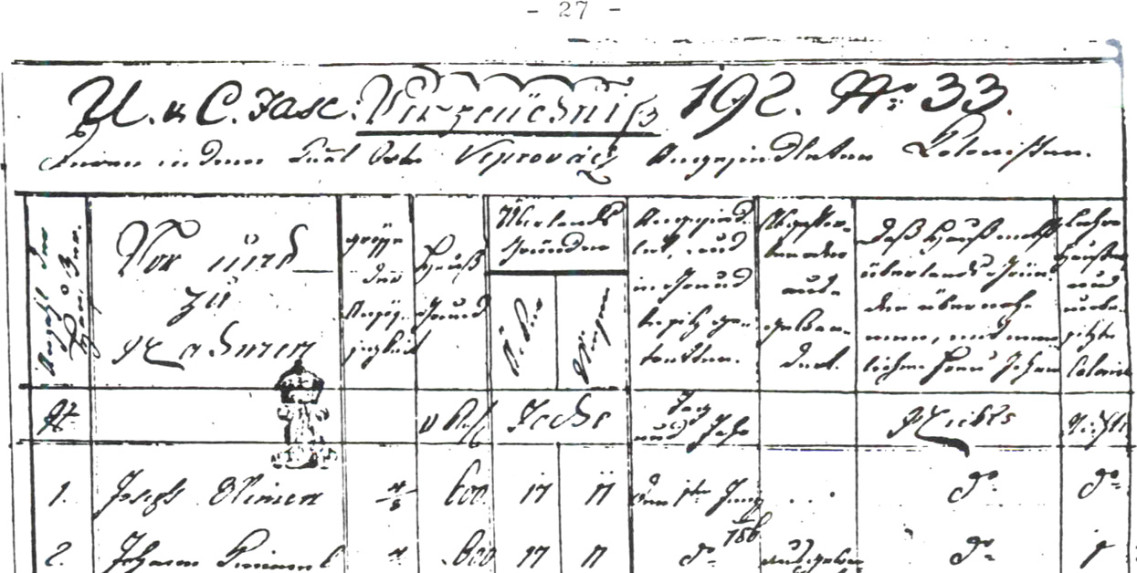 Quelle: Ungarisches Staatsarchiv, Budapest, Bestand OL, E 125 Impopulationalia, 34. csomó, 1787 – 70 – (Weprowatz)