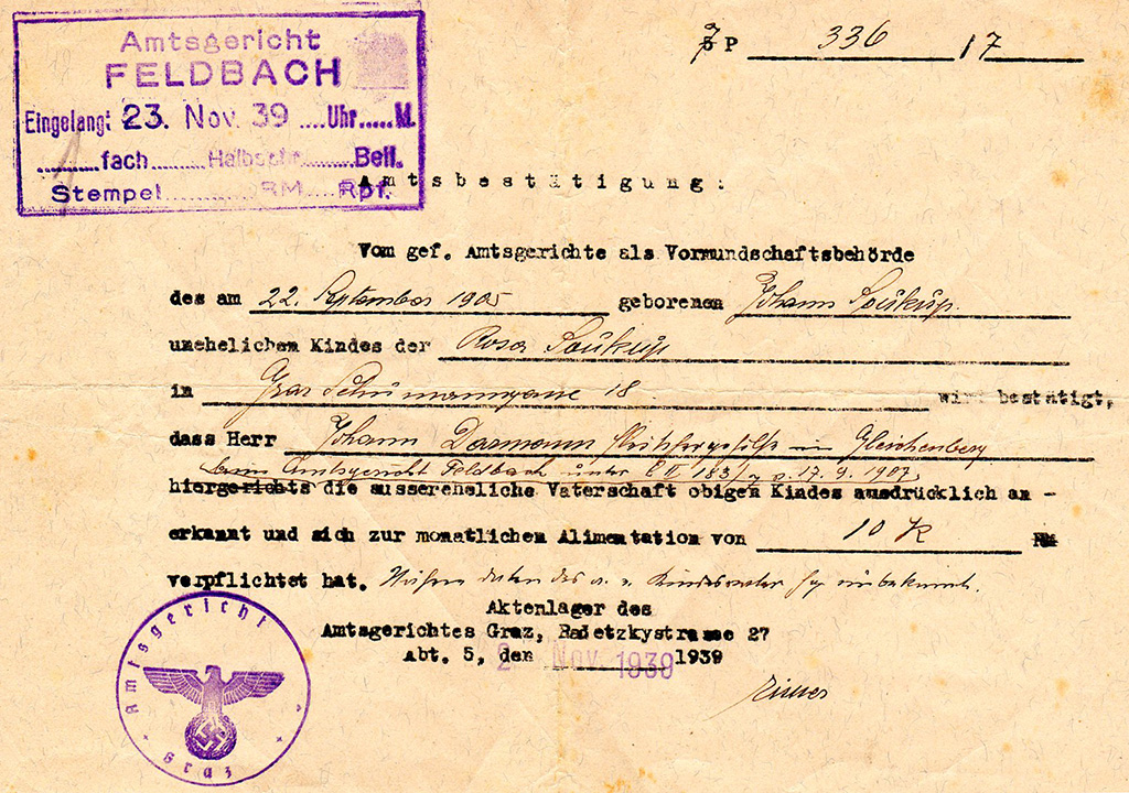 Amtliche Vaterschaftsanerkennung von Johann Darmann |