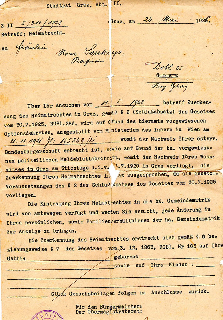 Anton und Maria Soukups Tochter Rosa wurde am 28. August 1886 in Leoben geboren. Da in ihrer Familie – trotz tschechisch-böhmischer Vorfahren – inzwischen deutsch gesprochen wurde, sollte Rosa nach dem Willen ihrer Großmutter Katharina Fronko (=Frank, 1813-1890) „böhmisch“ beten lernen. Die sechsklassige Mädchenvolksschule besuchte Rosa in Eisenerz und schloss sie mit sehr gutem Erfolg ab. Sie beherrschte Steno und war die meiste Zeit ihres Berufslebens als Küchenkassiererin und anderen ähnlichen Tätigkeiten in der gehobenen Gastronomie in Graz und Umgebung saisonal beschäftigt. Erhalten sind Zeugnisse von den Steinfeldersälen, Graz, Gaststätte Bierjakl, Graz, Sackgasse 10; Girardi Keller, Graz, Hotel Südbahnhof, Leoben, Josef Gfrerer, Graz, Annengasse 3, Kuranstalt AG, Tobelbad, Stefan Dozsgay, Voitsberg, Stadt. Restaurant, Graz, Neutorgasse 48. Eine Saison war sie auch in Meran tätig. Nach ihrer Pensionierung arbeitete sie bei Bedarf im Stadtkeller. Ihr Sohn Hans (Johann) kam unehelich in Graz zur Welt. Die Vaterschaft hat Johann Darmann, Sohn von Johann Grumeth (und Maria Darmann anerkannt. Die Vorfahren von Johann Grumeth, Sohn von Leonhard Grumeth und Margaretha Fuchs und Maria Darmann, Tochter von Agnes Darman stammen aus dem Kärntner Lavanttal aus den Orten St. Andrä, St. Marein, St. Gertraud, St. Margarethen. 1907 oder kurz Zeit davor war Johann Darmann Lohndiener im damaligen Hotel Mailand in (Bad) Gleichenberg und einmal Fleischergehilfe bei Friedrich Delitz in Mürzzuschlag. Rosa heiratete am 27.10.1932 den Witwer und Zimmermann Anton Walch (* 01.05.1874 + 01.05.1948). Rosa starb am 14. März 1973 im Landeskrankenhaus in Graz.