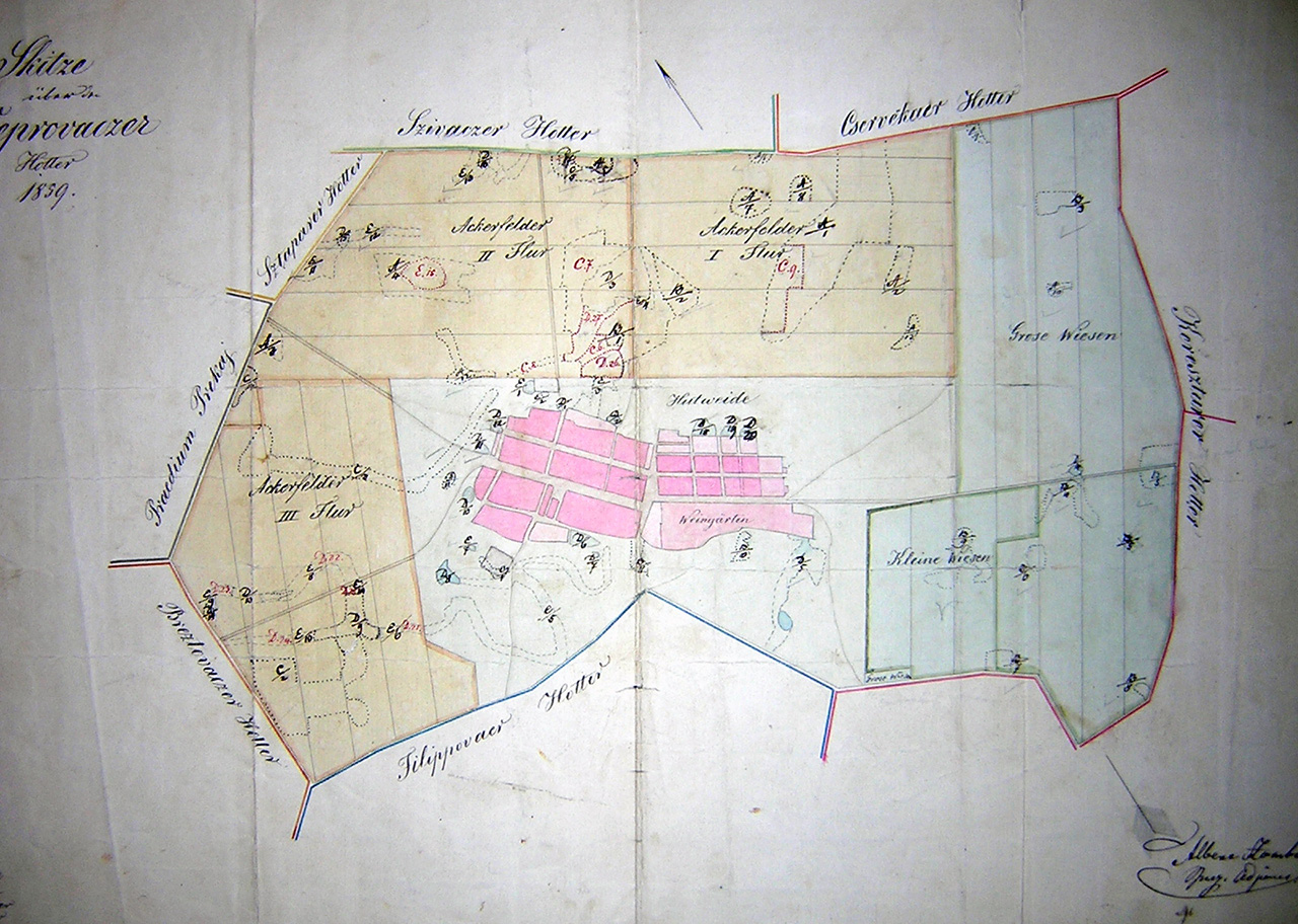 "Skizze über den Veprovaczer Hotter 1859" aus dem Historischen Archiv Sombor (Istorijski arhiv Sombor), Signatur unbekannt